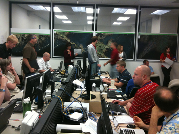 Waypoint Mapping and a team of "GIS Smoke Jumpers" traveled to Louisiana in May to establish an Enterprise GIS at the Incident Command Post for the Deepwater Horizon oil disaster in the Gulf. The GIS was used to track and manage a wide variety of map information from literally dozens of organizations, for both operational and archival purposes. A Common Operational Picture was provided through several simultaneous feeds: ArcGIS Server for ArcMap users, Google Earth KML and also through a simple, yet powerful Flex web-based map viewer, complete with analysis tools.